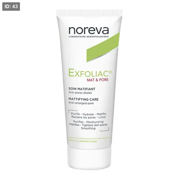 كريم نوريفا إكسفولياك مات آند بور (Noreva Exfoliac Mat & Pore) هو عناية مطفية مصممة خصيصًا للبشرة المختلطة إلى الدهنية والمعرضة للشوائب. يعمل بتركيبة مبتكرة على شد المسام، امتصاص الزهم الزائد، وتنظيم إفراز الدهون بفضل مركبات الزنك والبيوتين. يمنح البشرة مظهرًا مطفيًا وناعمًا مع تقشير لطيف وتجديد للخلايا، وهو مثالي لتثبيت المكياج.